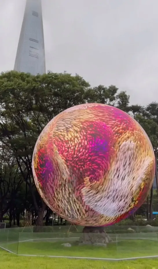 The result? A 7-meter-tall, jaw-dropping orb that doubles as a digital art canvas, event billboard, and tourism magnet. Locals are already calling it “Seoul’s Glow Ball” – and tourists? They’re lining up to snap selfies under its glow.
